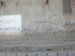Common in Iran: Paintings of Iran-Iraq war martyrs on sides of buildings.