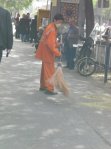 An old man walks down the street.